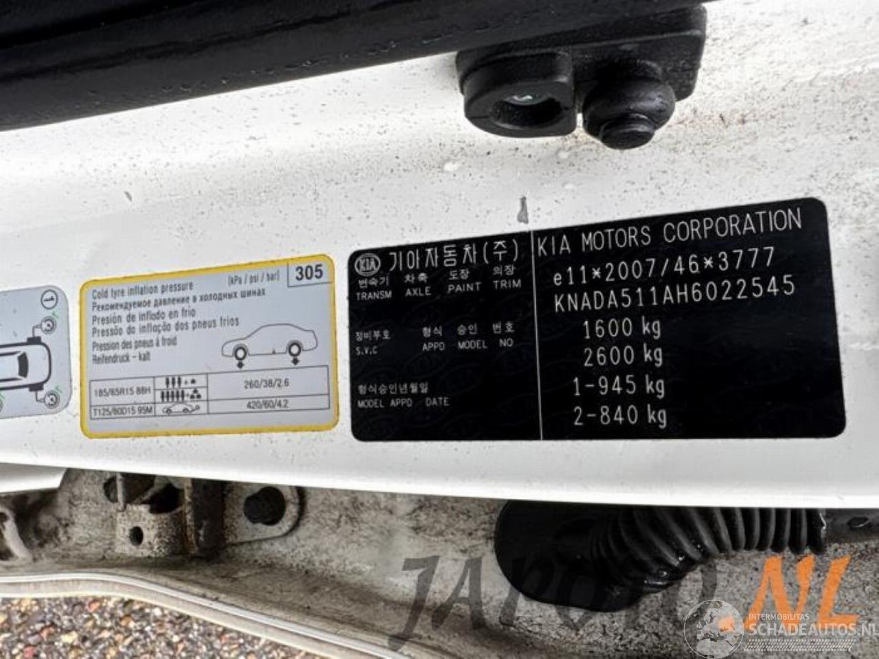číslo karoserie: KNADA511AH60*****