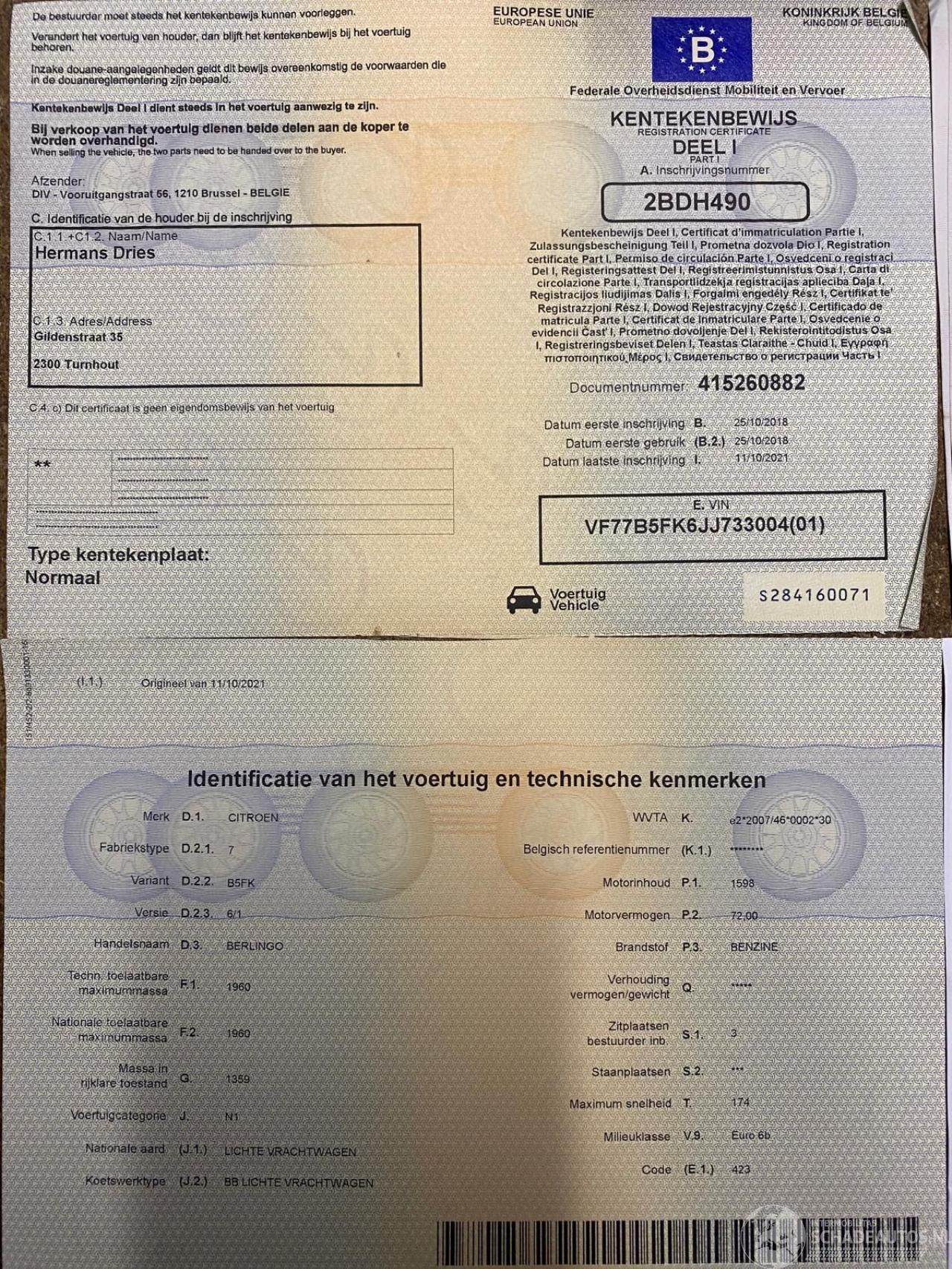 Reg. Certificate(I+II)=OK, C.O.C=OK, CarPass=OK