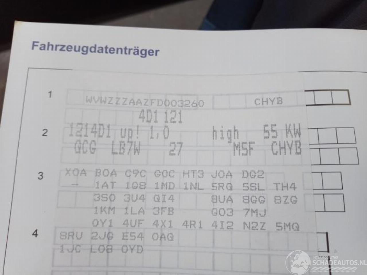 Model: UP! Up! (121), Hatchback, 2011 1.0 12V 75