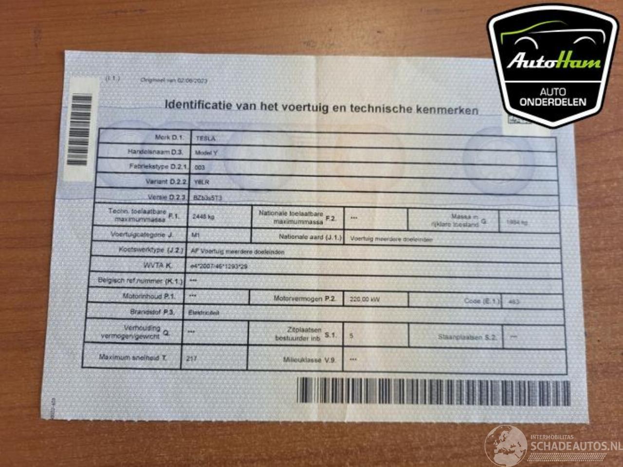 шаблон: MODEL Y  Model Y (5YJY), SUV, 2019 Long Range 72kWh
